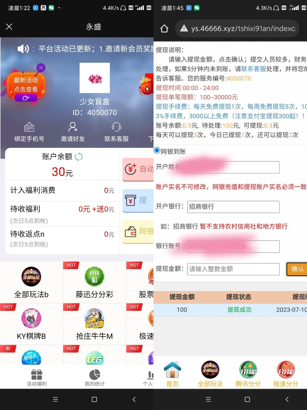 刚玩了,变成1000提现,提不出来,100才可以提