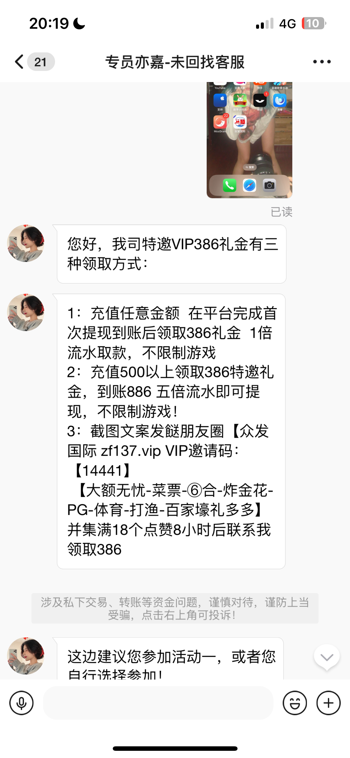 众发国际纯黑平台 打电话送彩金说要充值 充值完黑款彩金送18 笑死了一点格局没有 大家别去充值 里面的彩票都是他们内部人员控制的 买啥死啥 根本中不了 黑的不能再黑