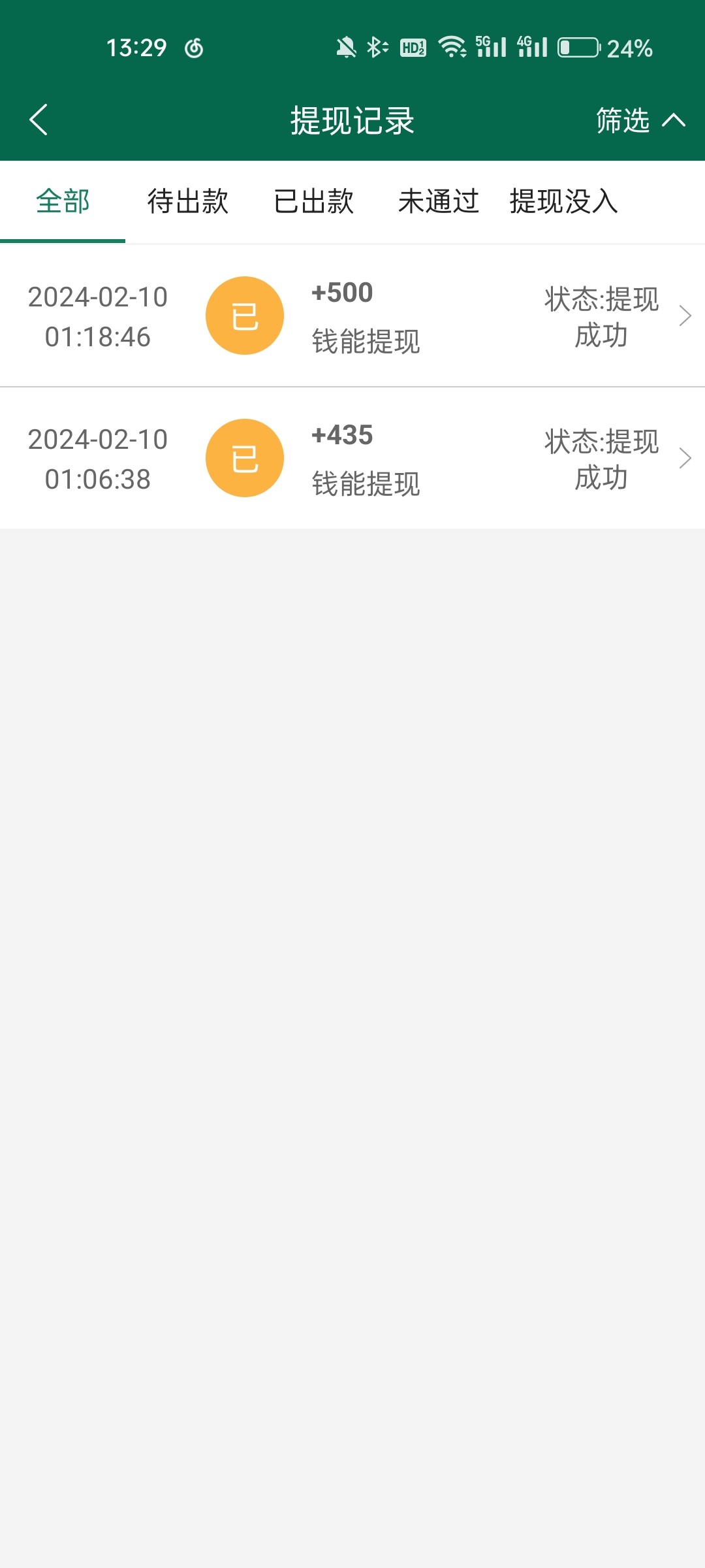 发发呆了 ▶ 510369 你330提现到账了吗? 2024-2-10