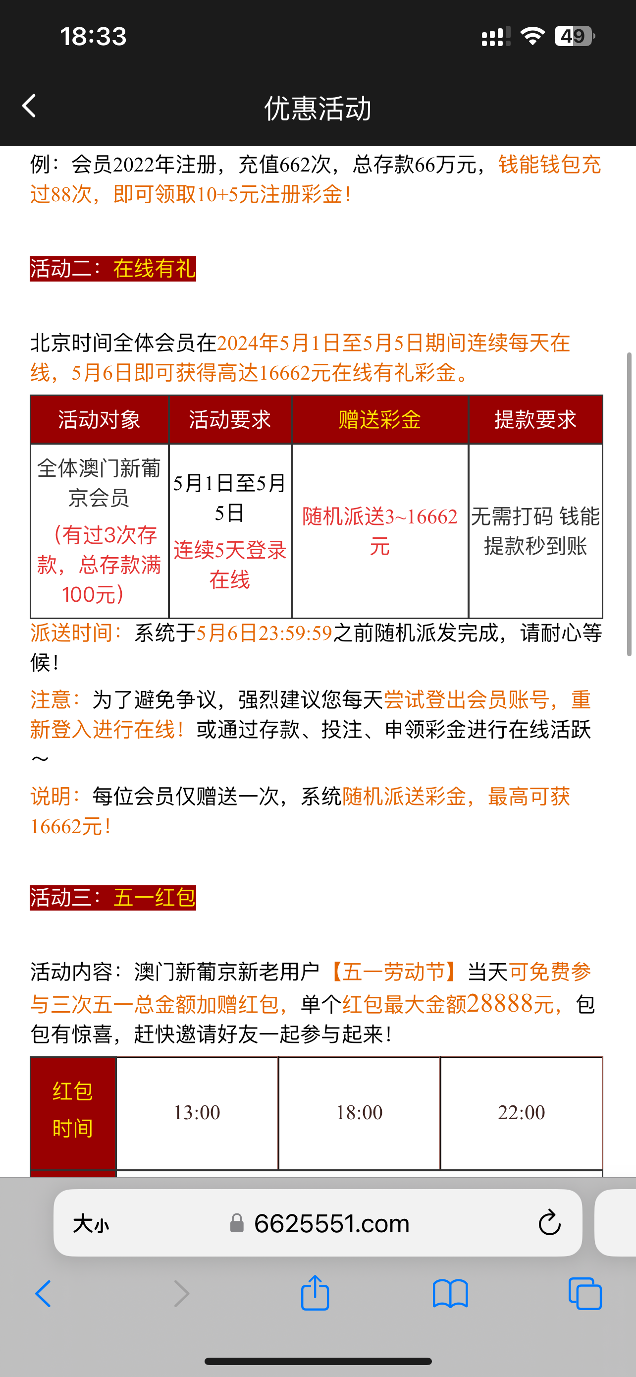 4.29之前注册的5/1回馈10有过充值的回馈15每日登入送3-16662每日还有抢红包活动