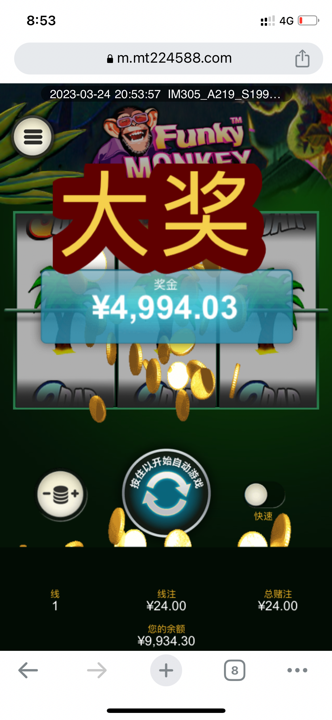 爆了9910 古怪猴子压24中9000多不知道出款能不能出,正在验证。。提款9910退回来了,好像最高990