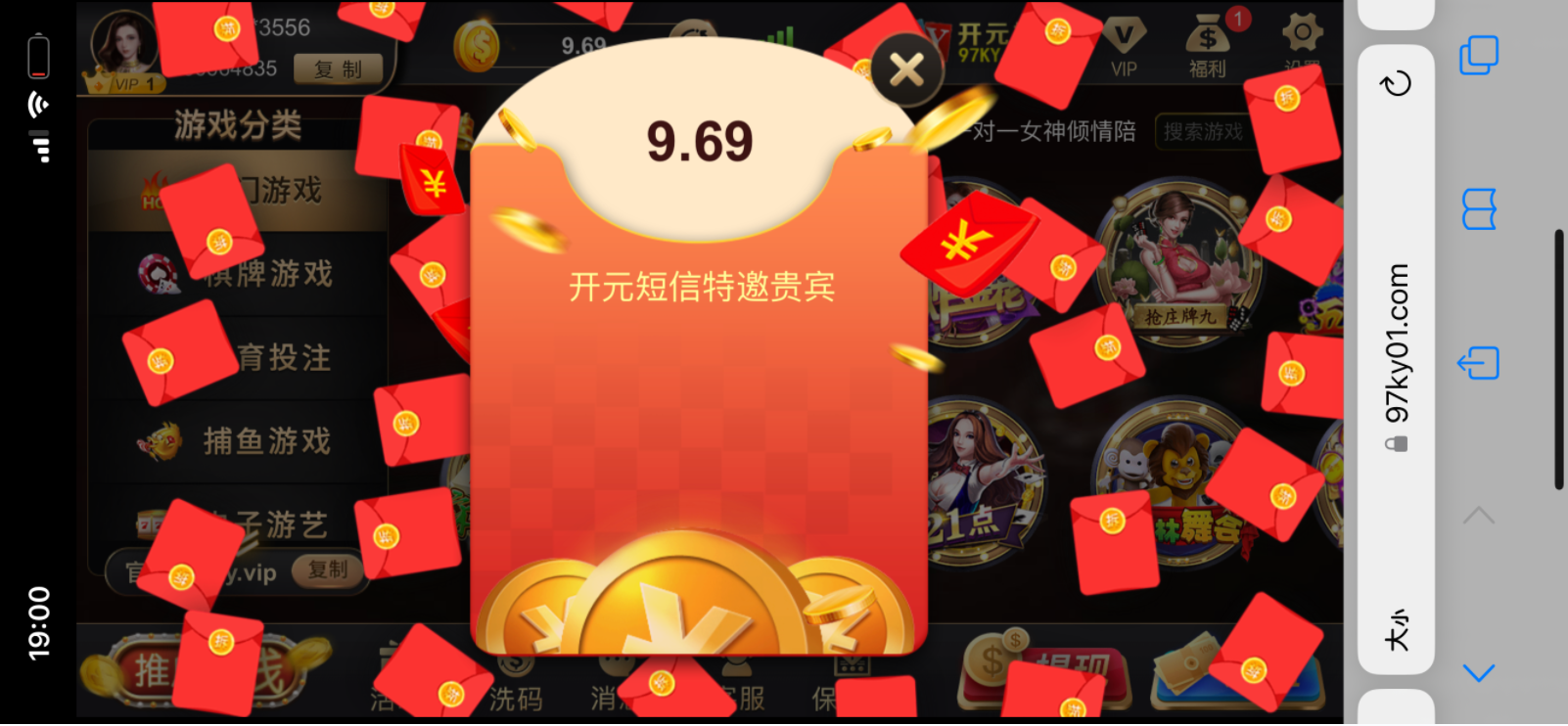 充值不可能,短信特邀注册送9.69