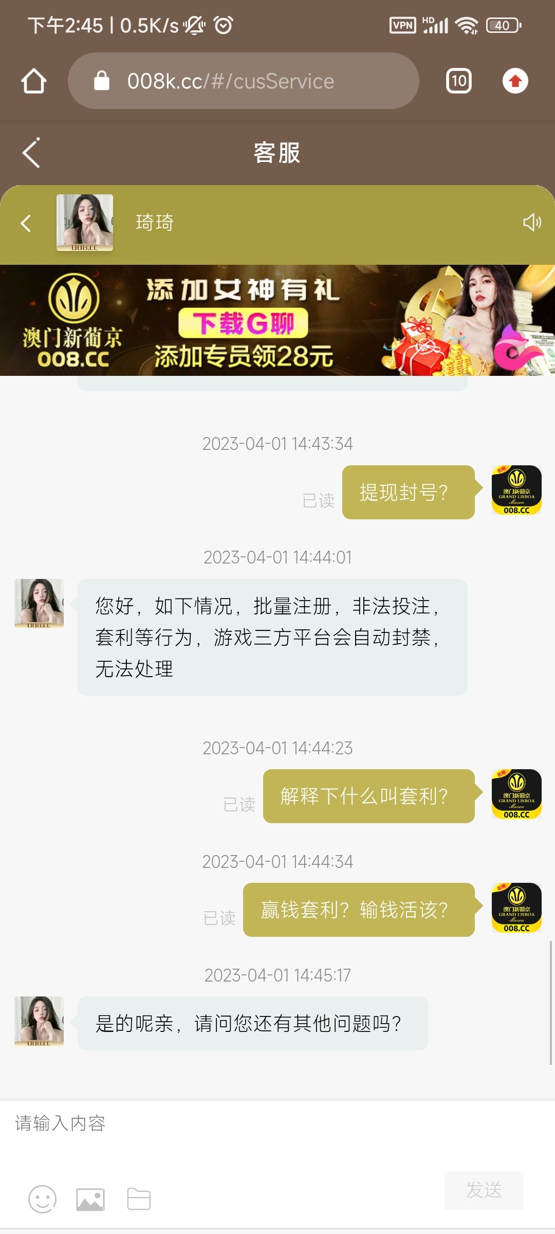 008.cc 之前是3家名字模板的台共用一个域名,这个台子发特邀给我。玩了100+58首存。打死了。