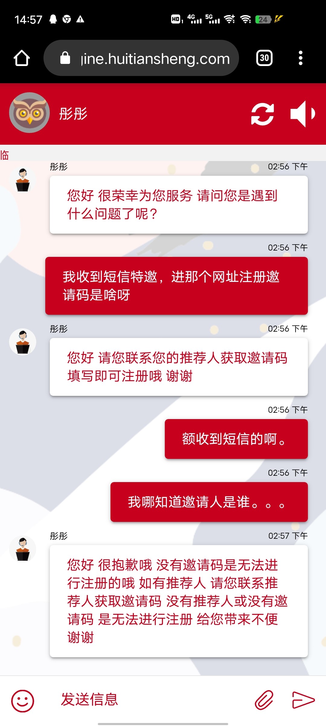 我是特邀,点注册还要邀请码,找客服让我问邀请人,6