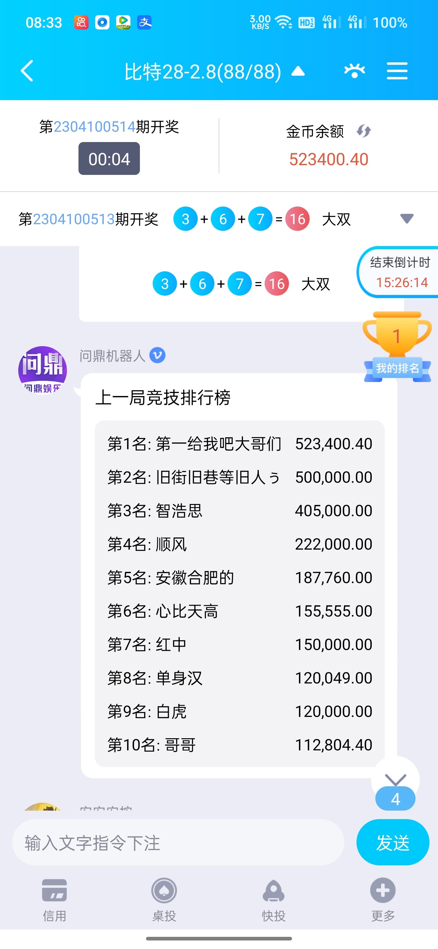 昨天刚打的问鼎,电子一点水没有,但是百家还可以,冲800挂了700个,最后一百在百家打到1000提了,赚了200