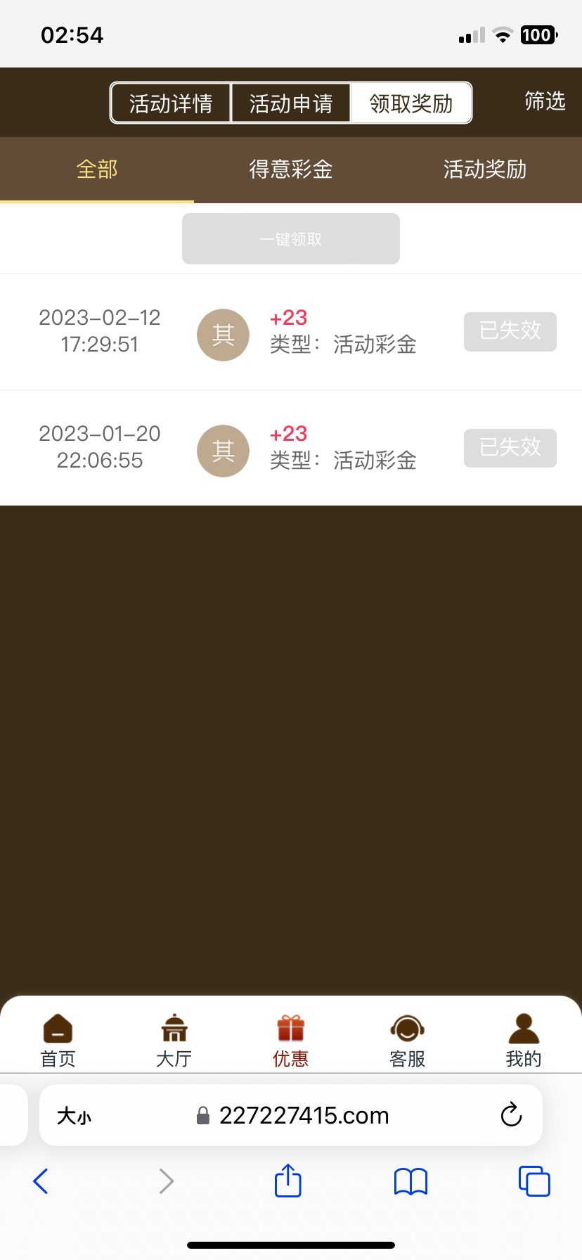 2月10号前注册的回馈23/220提现,活动中心自行领取