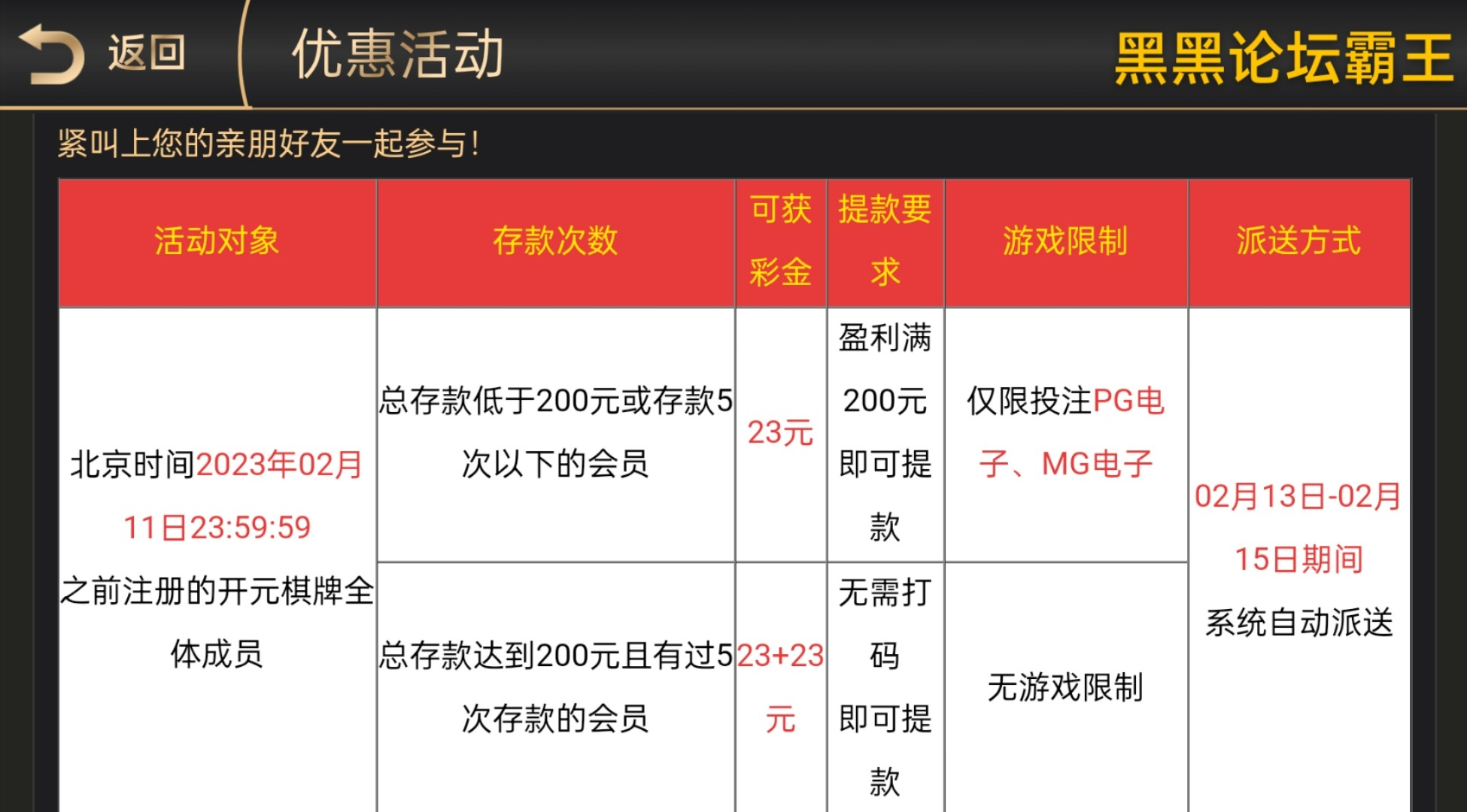 2月11号前注册的老用户有23回馈,自查