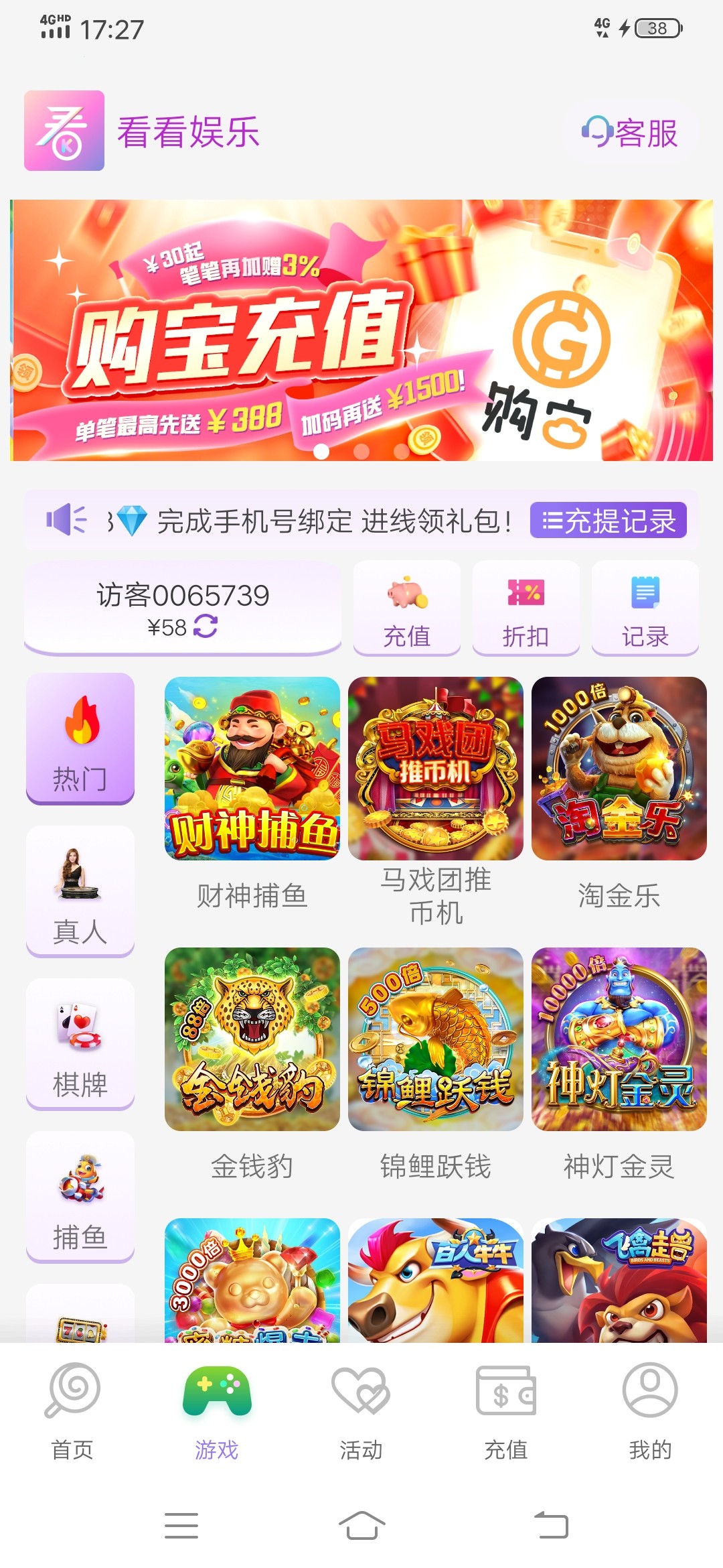 看到要充值我就直接充值了100,参加了100+100,打完流水就提了,然后去申请了58,打到388了,提了,结果第一个还没到,随缘了,到了美滋滋,不到就当100没了