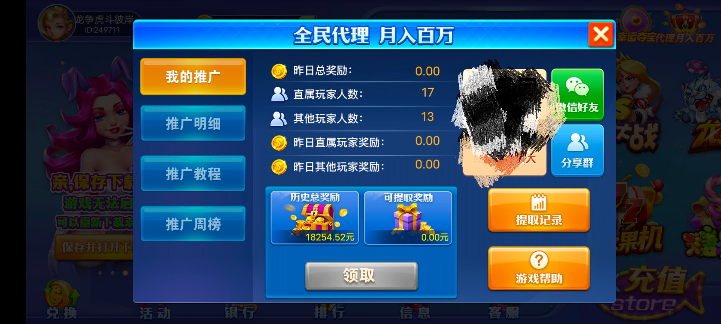 这个就是之前的大满贯棋牌,后面改名叫鼎盛了,之前佣金一万多,后来没玩过卸载了,今天登上去佣金还有一千多,不知道啥时候的返利。