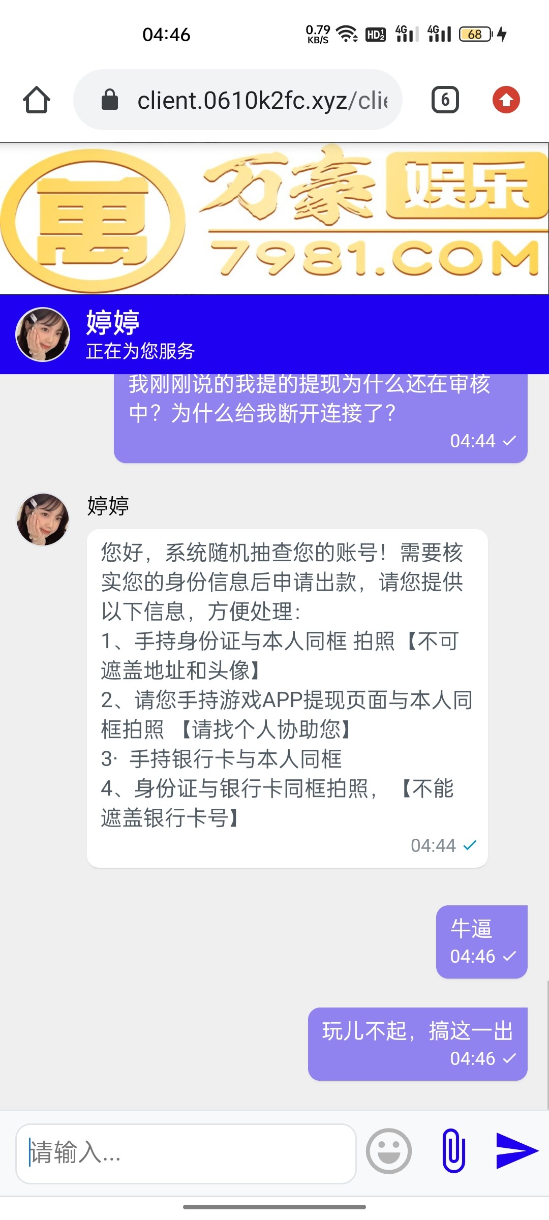 千万别玩儿,本来是打到100,然后最后给我冻结,让我充值100,我充了,然后打到500,提现两个小时了,没给出款,最后让提交手持之类的,特别麻烦,我感觉他们这种没信誉的平台提供了也是黑的。
