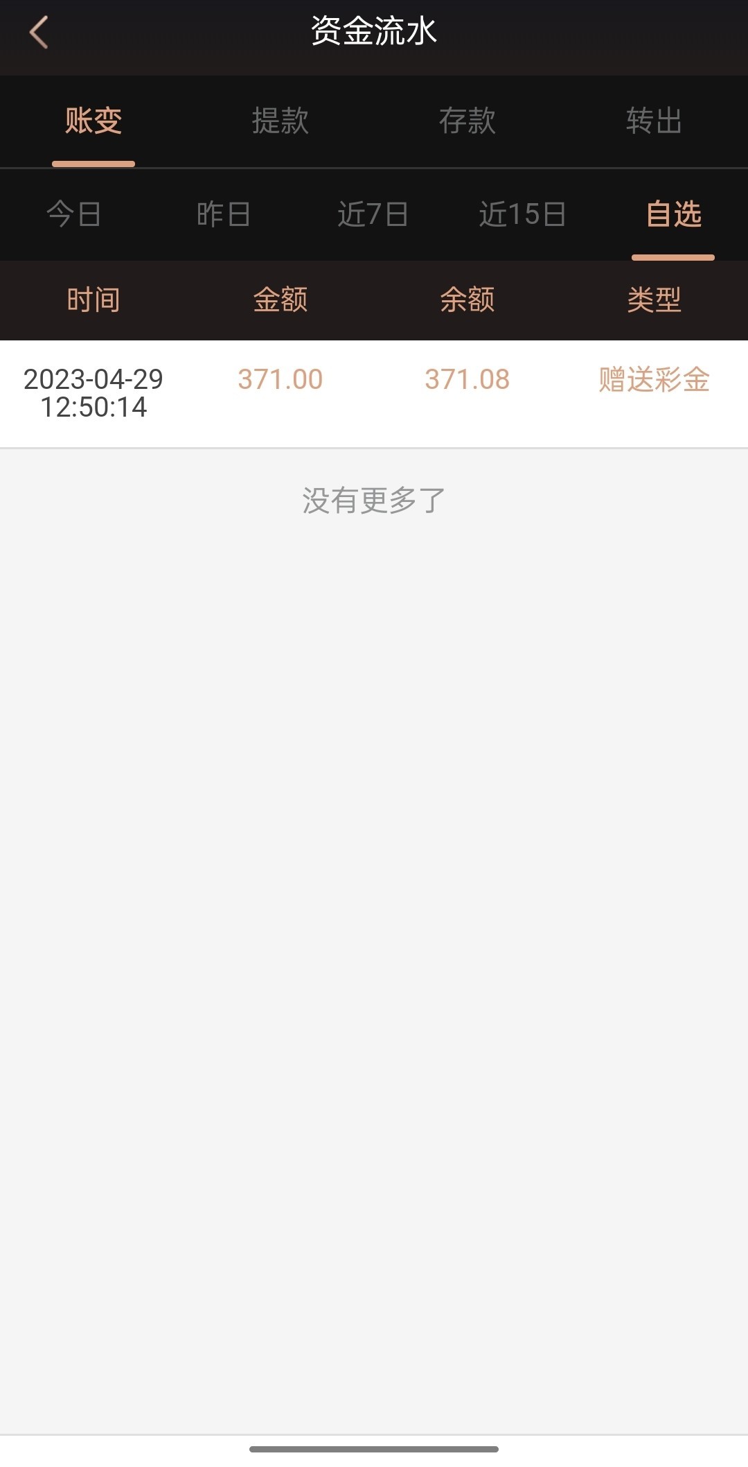无聊翻邮件,垃圾箱里有个免费赠彩金的网址,点进去是金年会,很久以前注册过,没有冲过钱,登录之后发现余额371,刷新了下还在,查了下记录是4月份赠的,不知道啥情况,打麻将2,一点水没有,洗白了,8块钱返水到280没提最后剩110,提了100。有号的去看看吧,没号的注册赠18+28