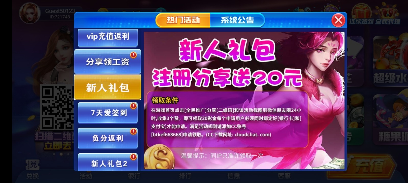 注册分享联系客服领取20彩金,提现自测