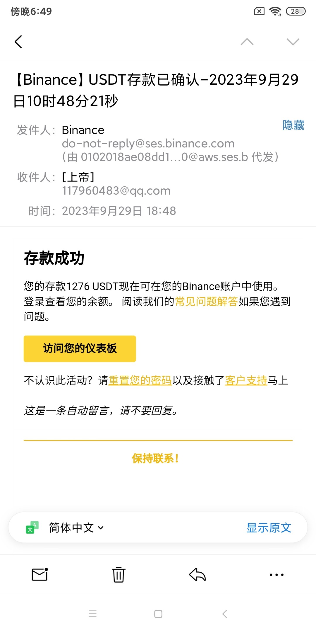 到账了