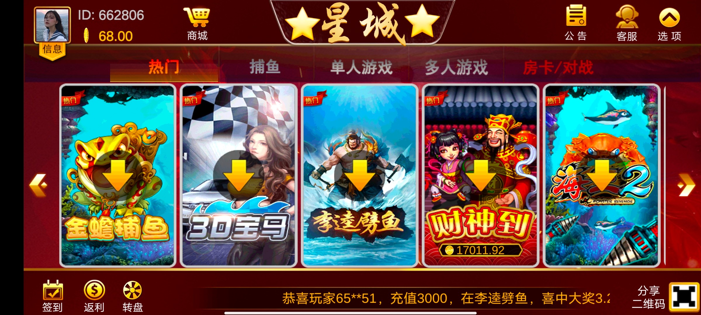 【无游戏限制】68打到500下200找客服