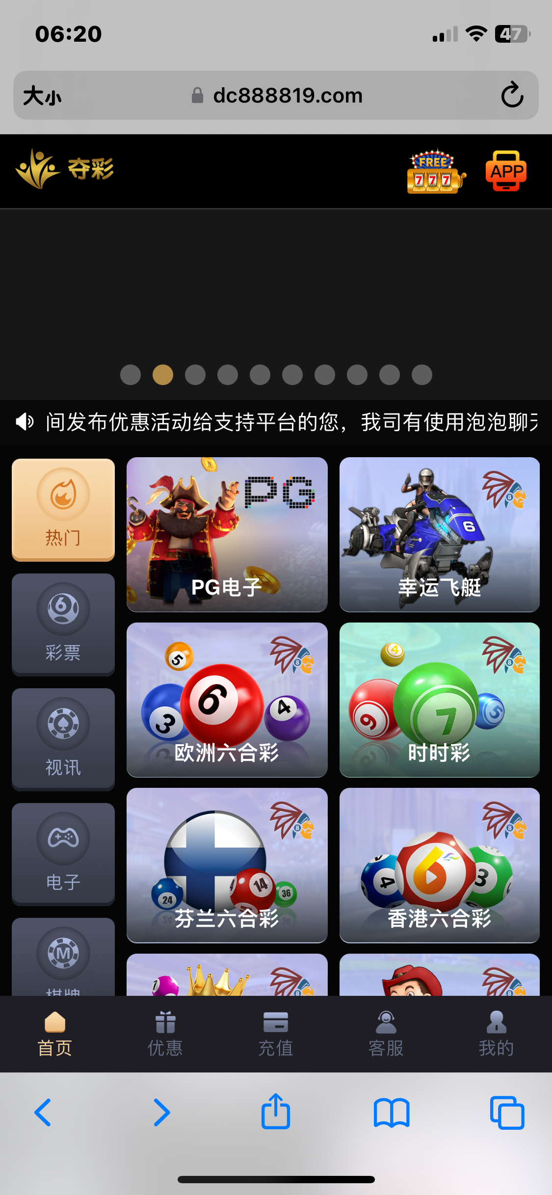 夺彩这个台离远点吧,吃人不吐骨头的充了四次三百就是一顿乱杀,PG麻将两块钱的注进免费就没一次超过50倍,拉两百块都不带进的一直卡胡,现在的台是真没法玩了不是黑就杀南宫台也是一样,十五号以后我就真的没赢过不管那个台,挂壁七千多五一那几天还行赚了2k!