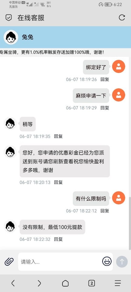 绑卡联系在线客服申请碰瓷即可满百提款