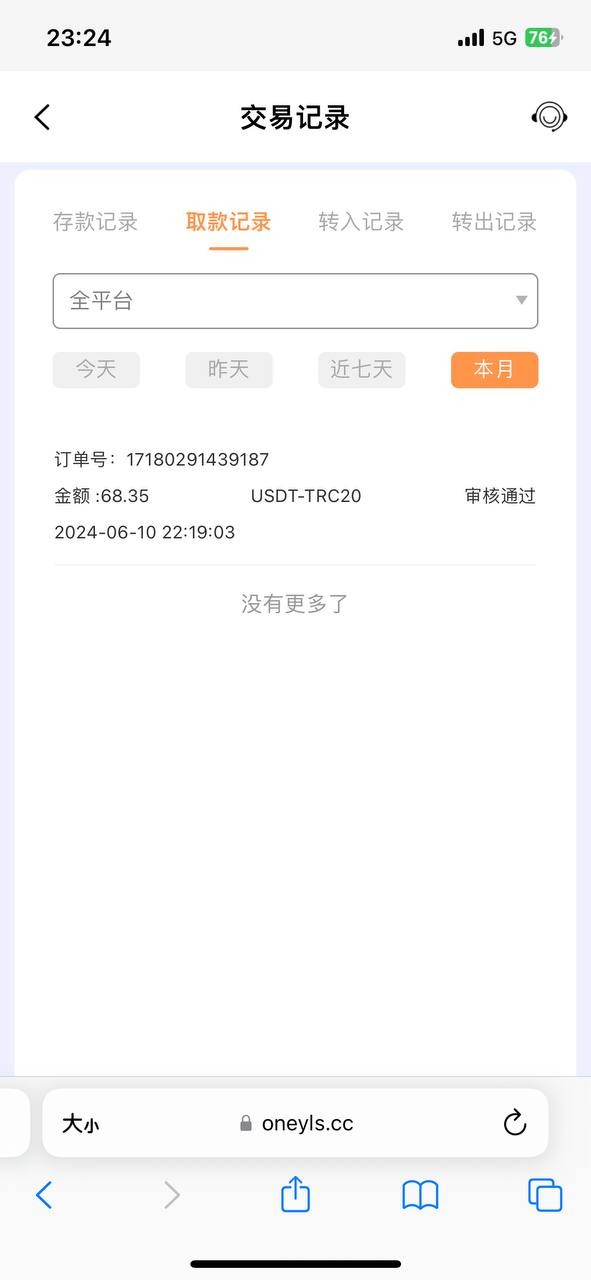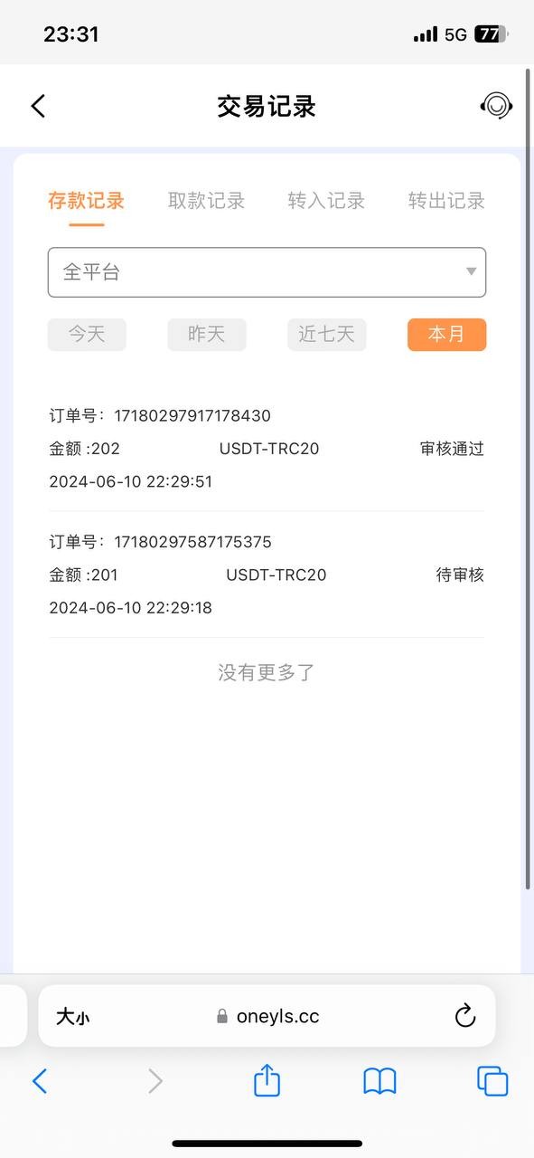 客服支付宝代存款,200+200,流水1800才能取款。取款500提u,让复存201元验证身份,然后存款进去就不能提了,客服也不回消息,网站 https://oneyls.cc