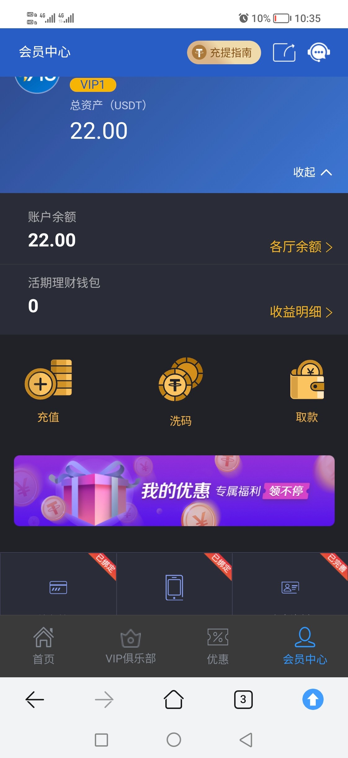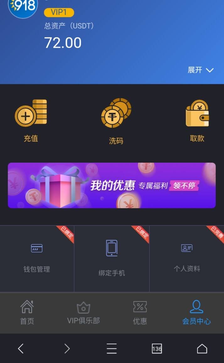 要进去钱包绑定虚拟货币地址,不然会拒绝的,在报表那里查看优惠,拒绝找客服绑定钱包之后再申请。