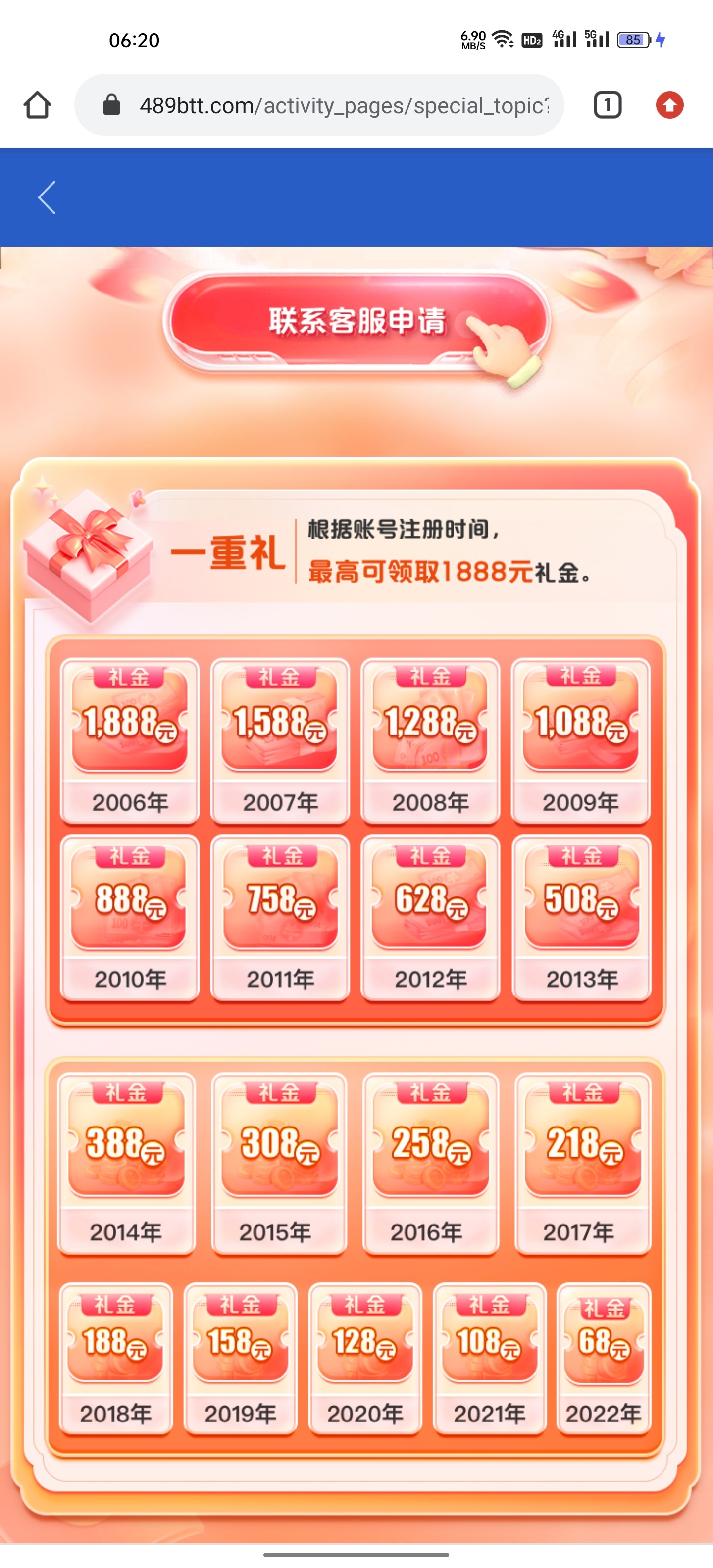 刚注册,客服打电话100+108,200+208。500+508不限制游戏