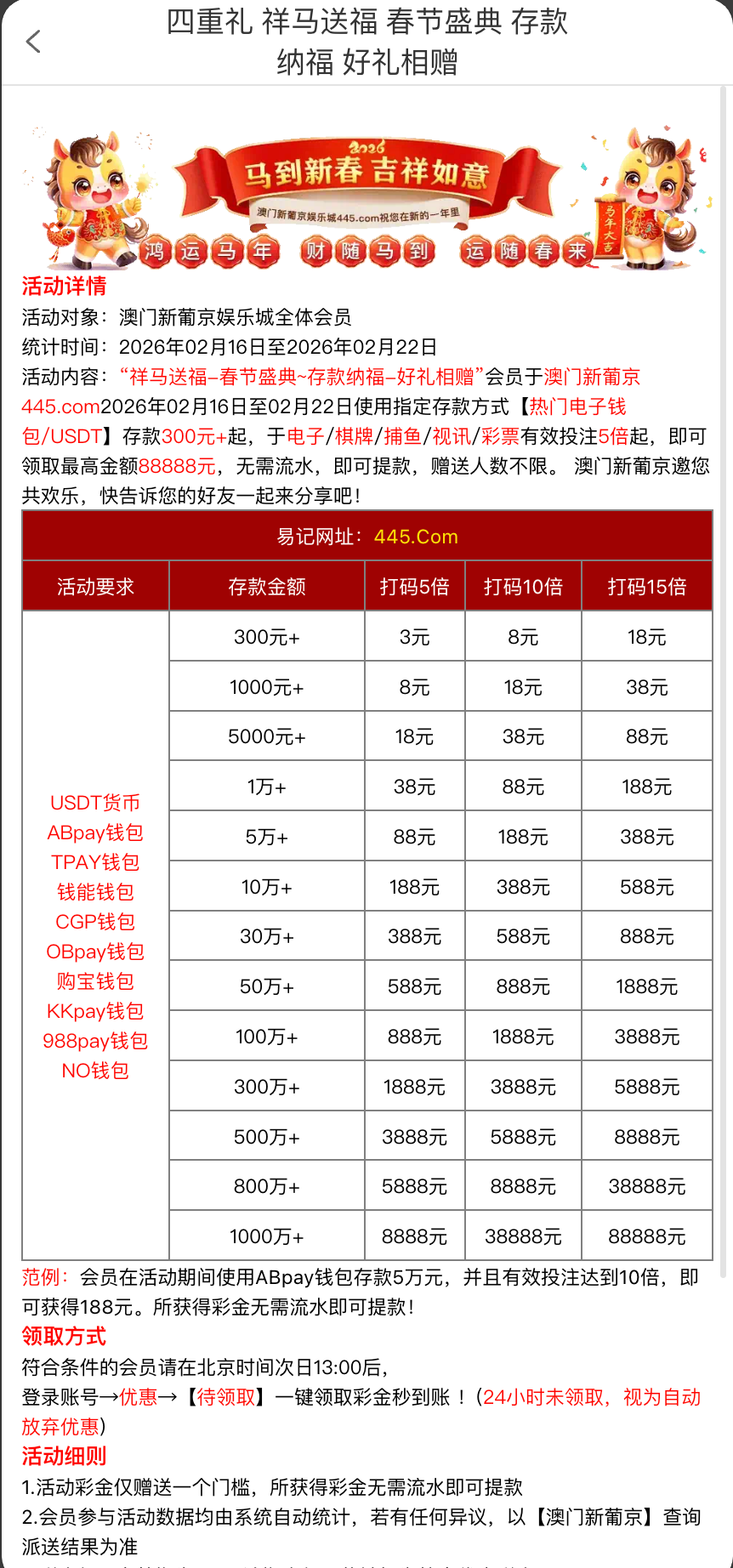 【澳门新葡京】每日三波千万福利红包免费领取,最高可获68445元