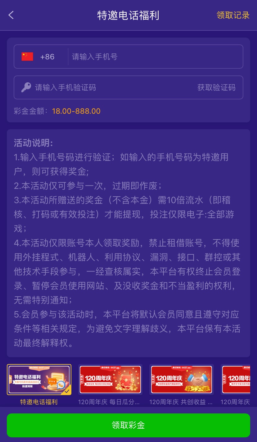 注册好优惠里自助领取彩金,10倍流水,仅限电子