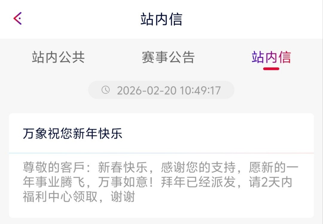 拜年红包登入上账号在看福利中心里有没有,回归彩金要去年1月1日到今年2月15号有充值才能申请领取,送多少彩金是根据会员等级派送的,3倍流水取款