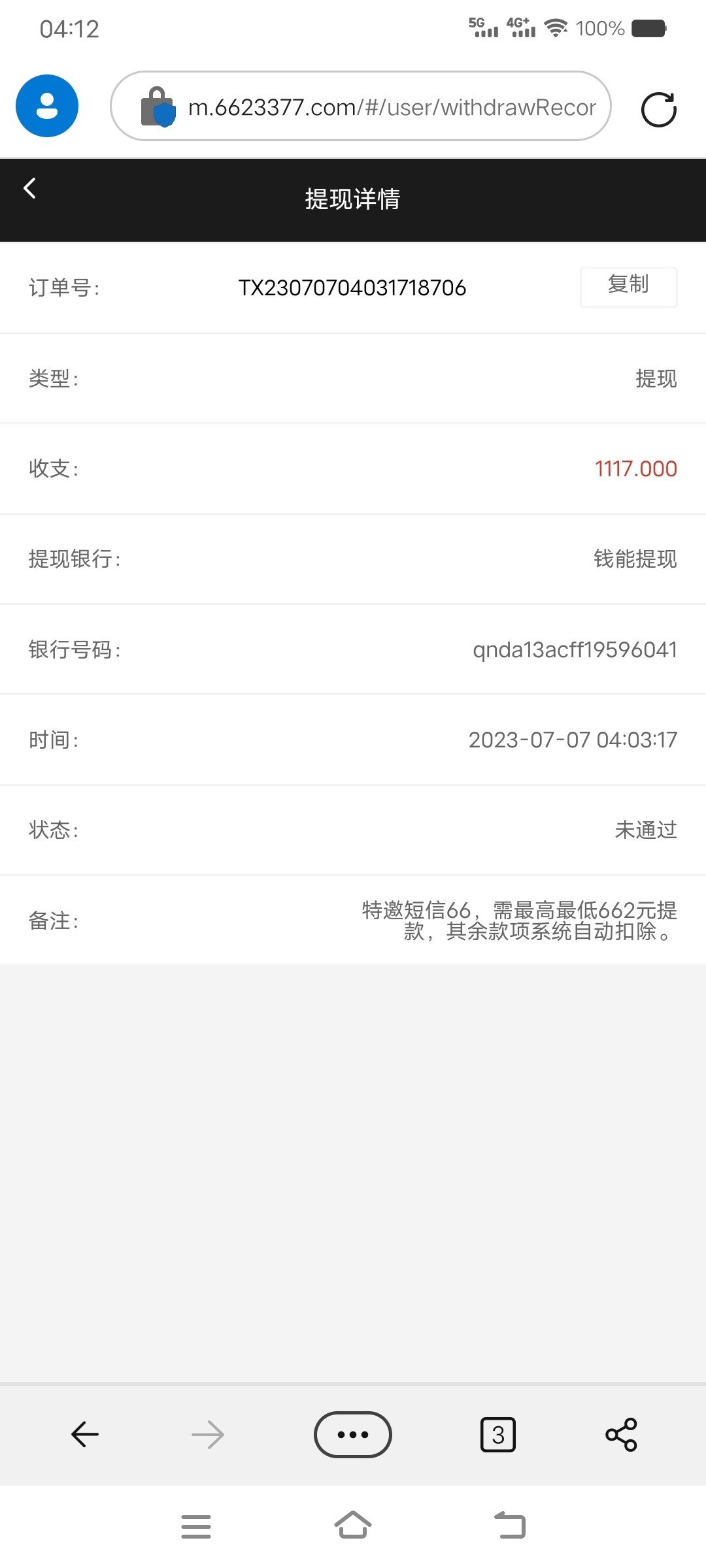 我打出来了,但是提现662显示已出款,钱没到账