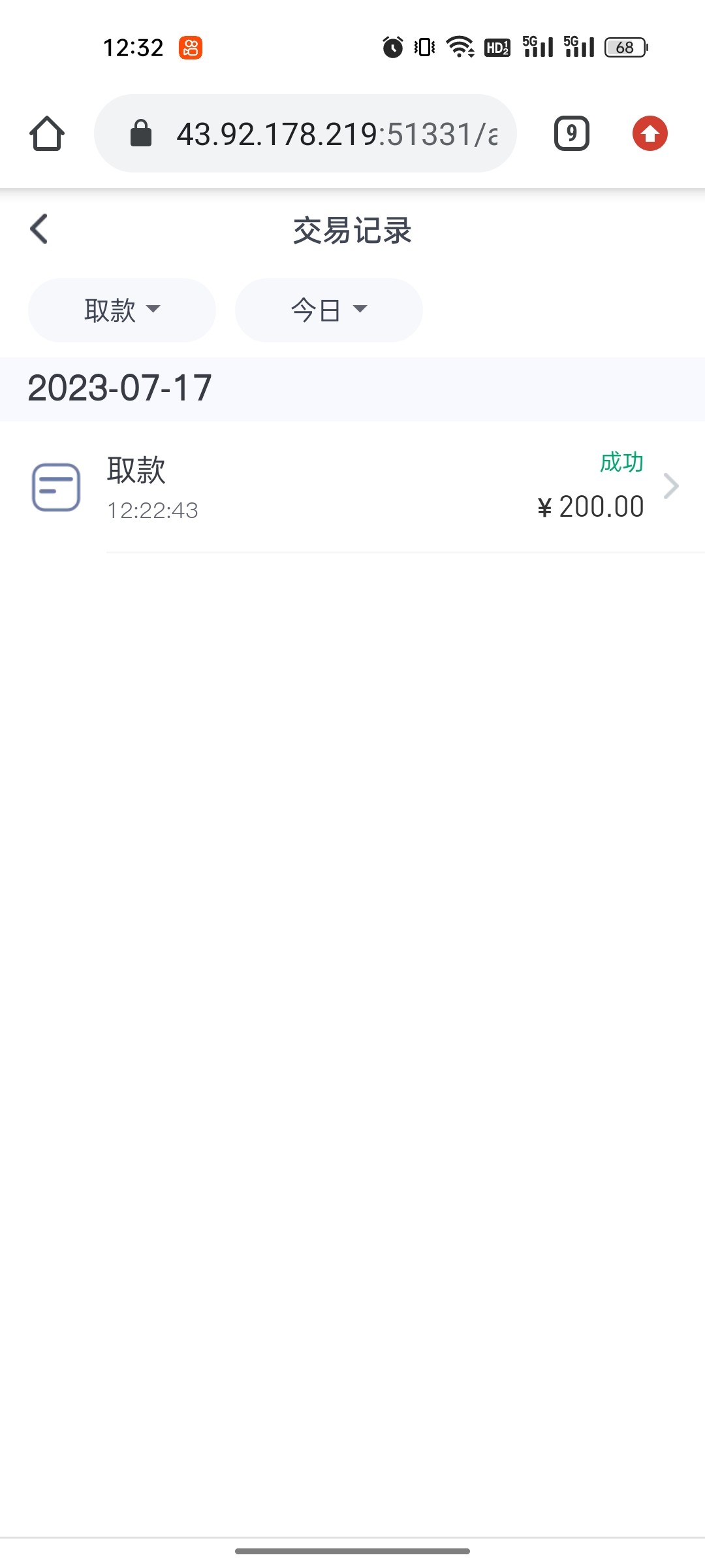 秒送 提款一百到账了