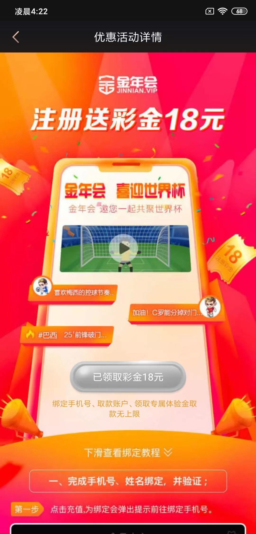 笑死人,要手机号,银行卡,还有本人在同一个地方才能领取彩金,外地卡,外地手机号和你注册的ip不一样领不了